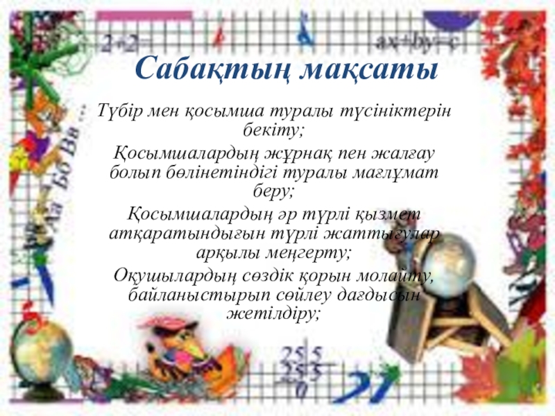 Сабақтың тақырыбы: Жұрнақ пен жалғау (қайталау)