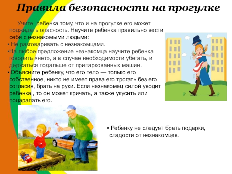 Ребенку не следует брать подарки, сладости от незнакомцев.