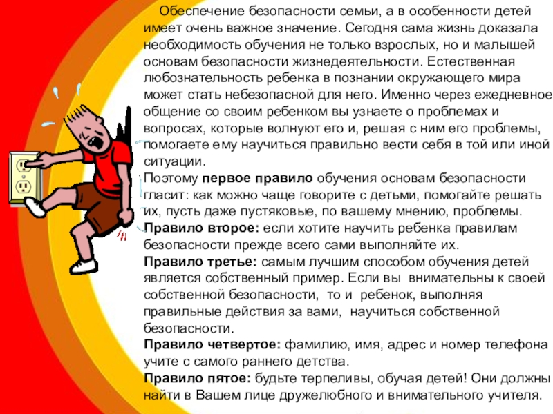 Не увлекайтесь примерами опасных ситуаций, произошедших с другими детьми. Это может вызвать ненужные страхи. Обучать ребенка безопасному поведению нужно на собственном примере. Дети копируют Вас. Не забывайте об этом.
