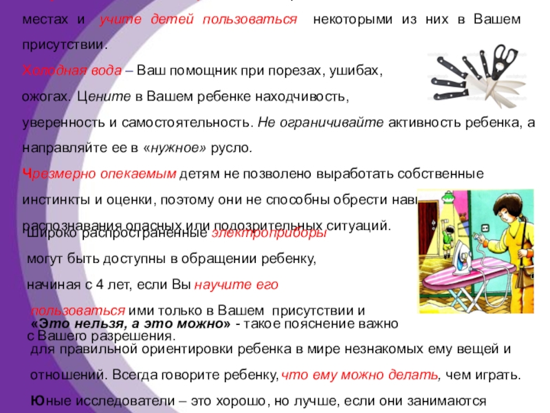 для правильной ориентировки ребенка в мире незнакомых ему вещей и отношений. Всегда говорите ребенку, что ему можно делать, чем играть.