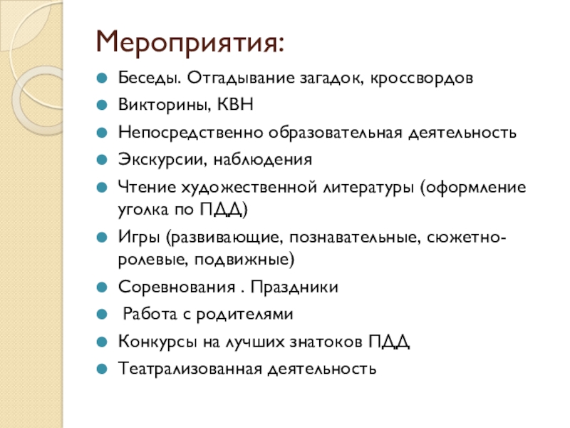 Слайд 5Мероприятия: