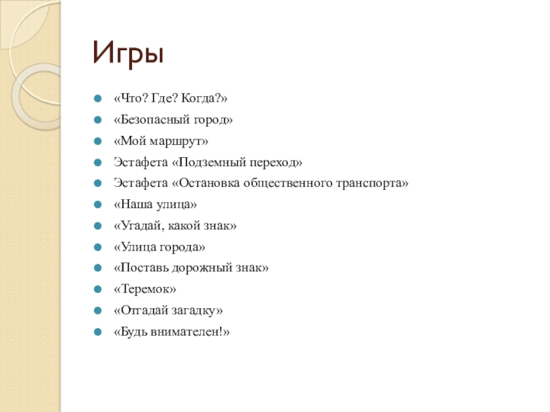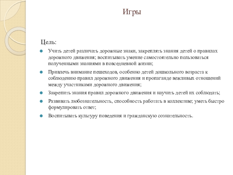 и подвижных игр по правилам дорожного движения