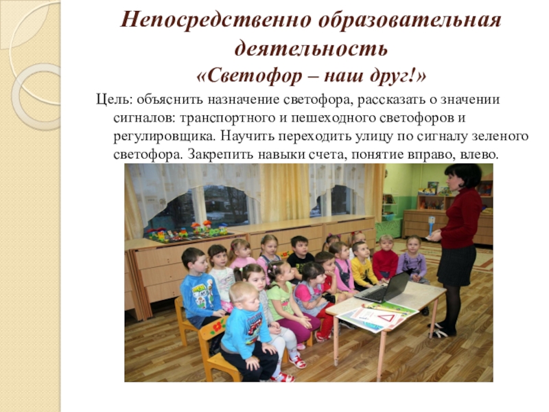 Цель: объяснить назначение светофора, рассказать