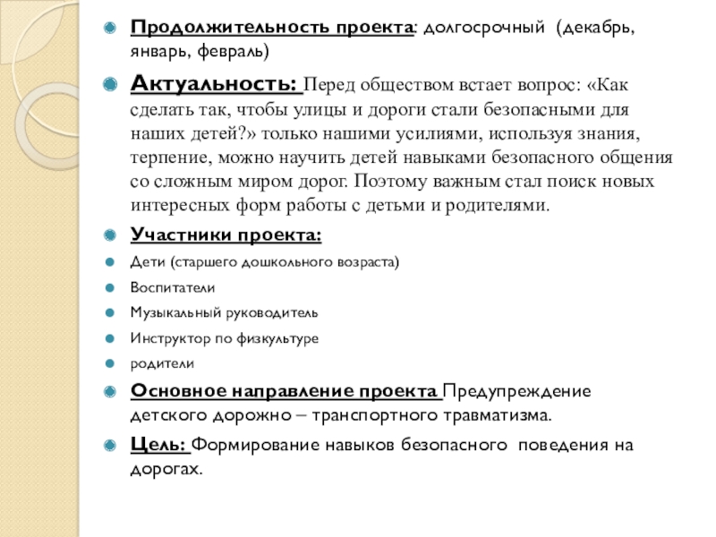 Слайд 2Продолжительность проекта: долгосрочный (декабрь, январь, февраль)