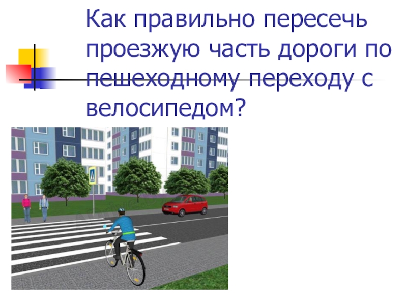 Слайд 33Как правильно пересечь проезжую часть дороги по пешеходному переходу с велосипедом?