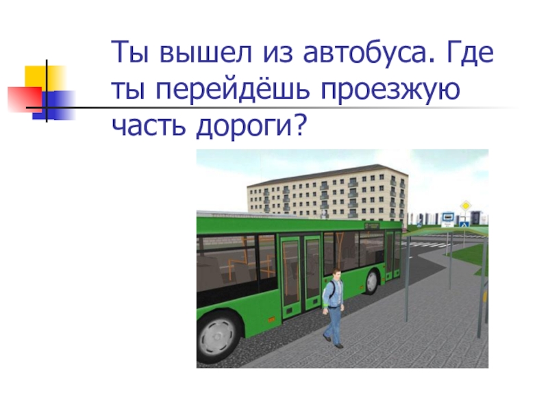 Слайд 35Ты вышел из автобуса. Где ты перейдёшь проезжую часть дороги?