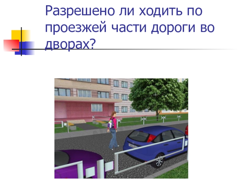 Слайд 39Разрешено ли ходить по проезжей части дороги во дворах?