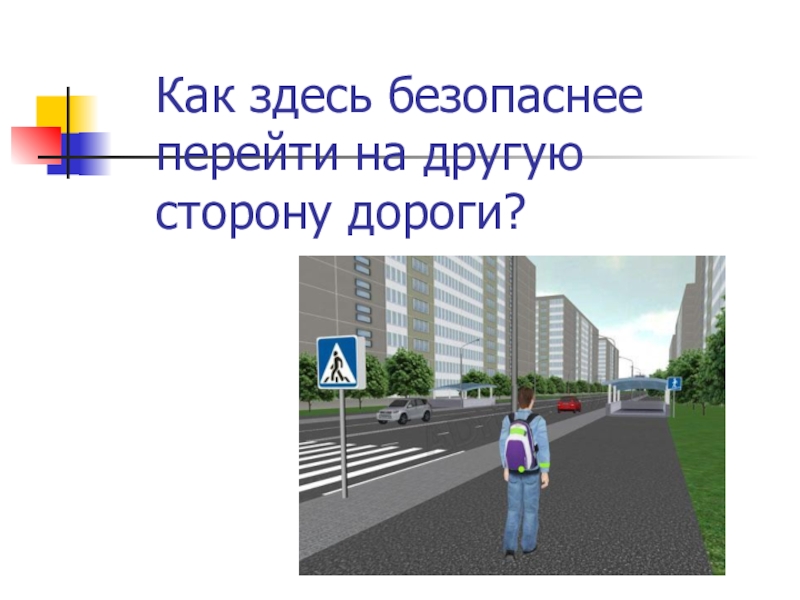 Слайд 34Как здесь безопаснее перейти на другую сторону дороги?