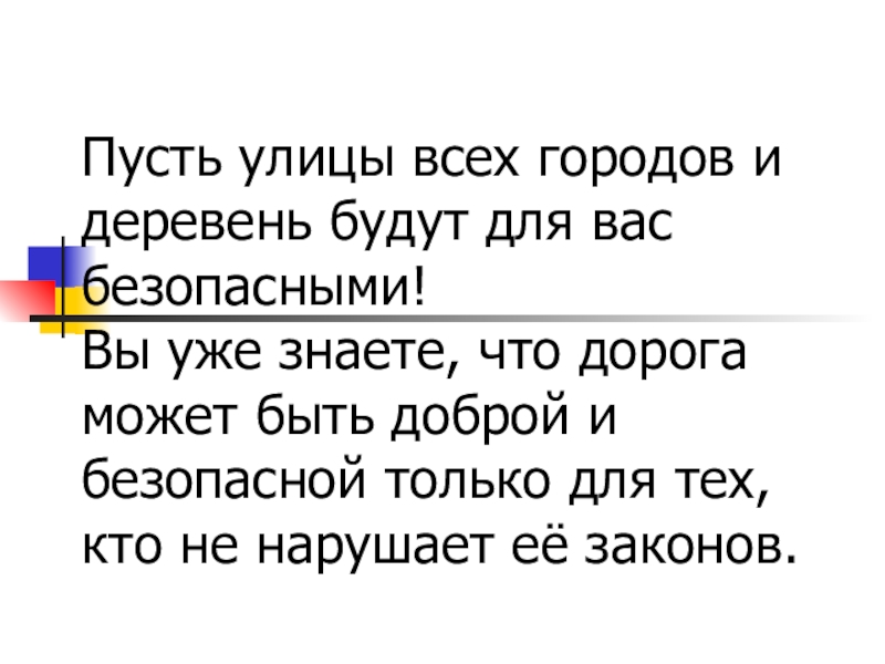 Слайд 42Пусть улицы всех городов и деревень будут для вас безопасными! Вы