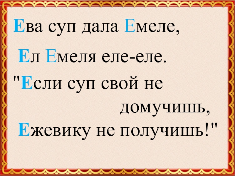 Ева суп дала Емеле,