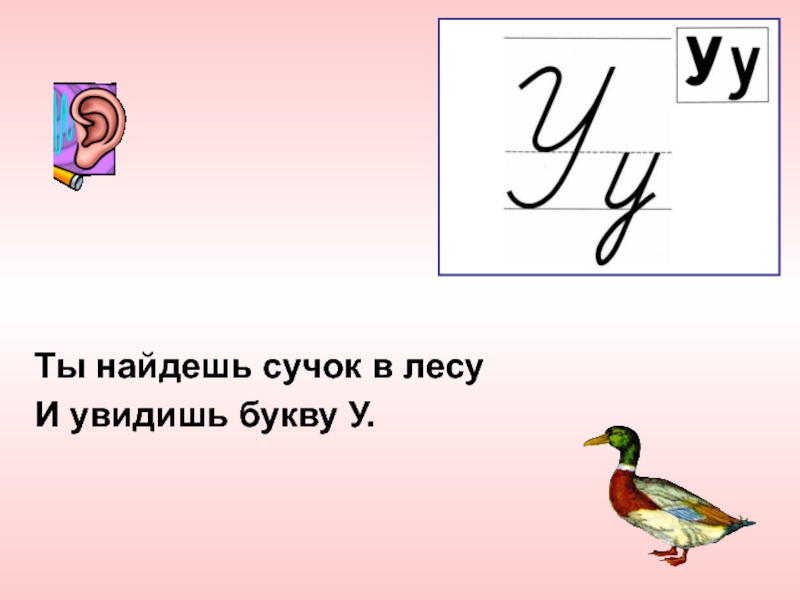 Ты найдешь сучок в лесуИ увидишь букву У.