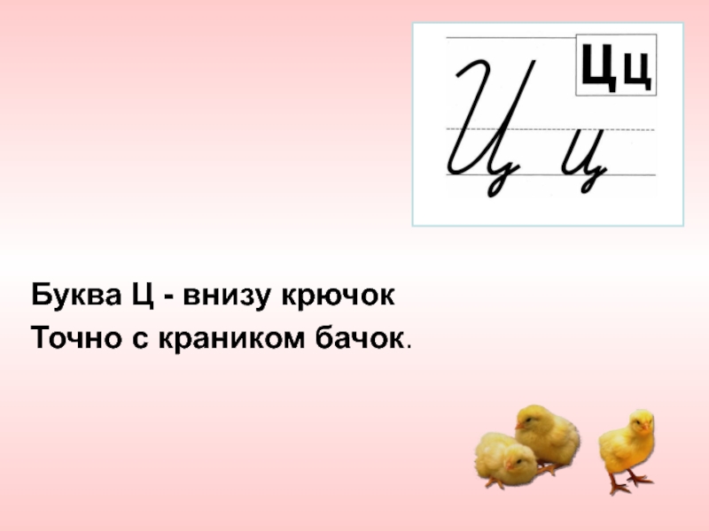 Слайд 25Буква Ц - внизу крючок