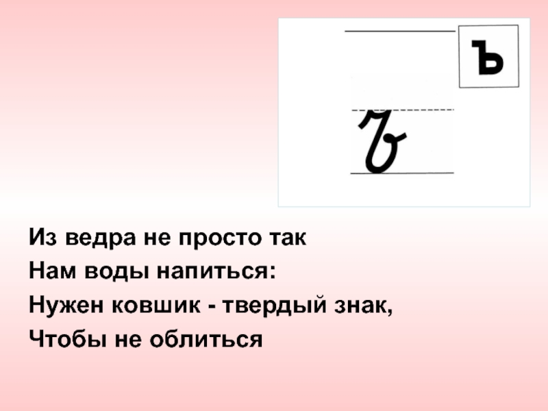 Из ведра не просто такНам воды напиться: Нужен ковшик - твердый знак, Чтобы не облиться