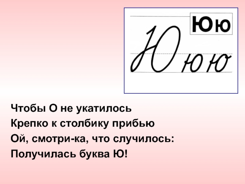 Чтобы О не укатилось Крепко к столбику прибью Ой, смотри-ка, что случилось: Получилась буква Ю!