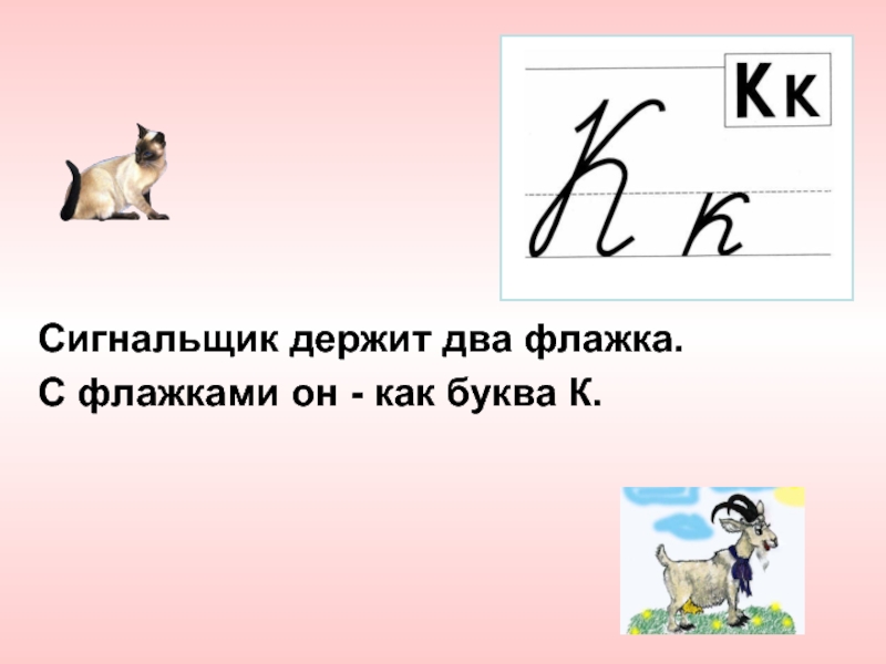 Сигнальщик держит два флажка. С флажками он - как буква К.