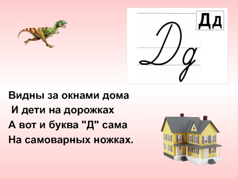 Видны за окнами дома И дети на дорожкахА вот и буква