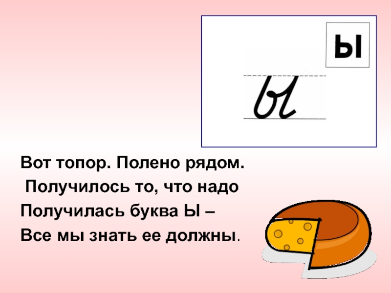 Вот топор. Полено рядом. Получилось то, что надо Получилась буква Ы –Все мы знать ее должны.