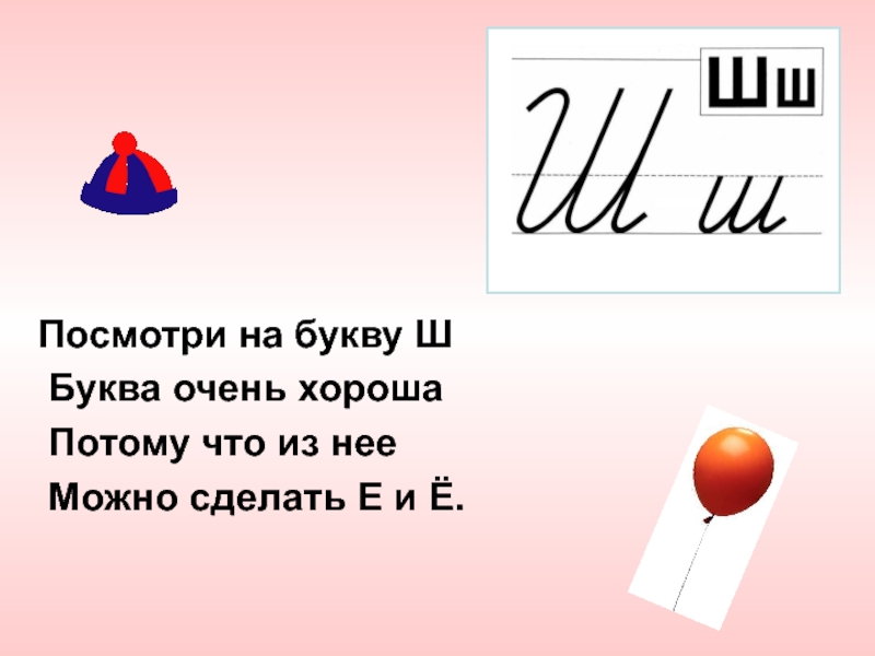 Посмотри на букву Ш Буква очень хороша Потому что из нее Можно сделать Е и Ё.