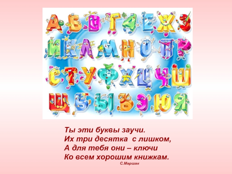 Ты эти буквы заучи.Их три десятка с лишком,А для тебя они – ключиКо всем хорошим книжкам.