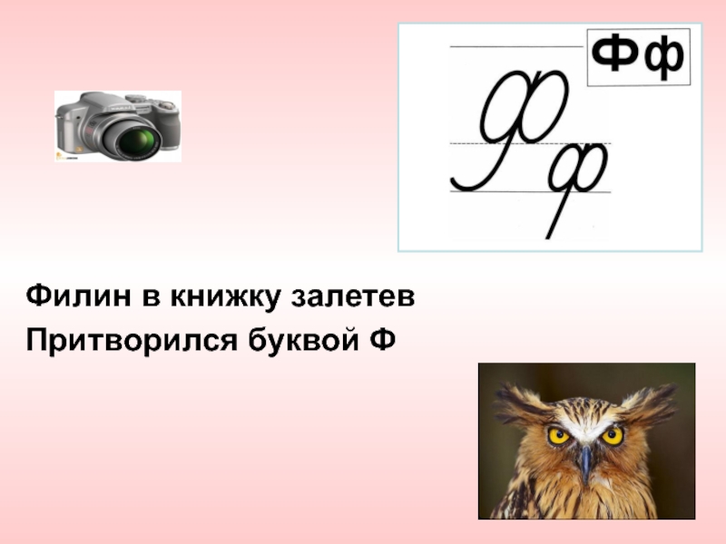 Филин в книжку залетев Притворился буквой Ф