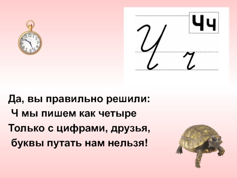 Да, вы правильно решили: Ч мы пишем как четыре Только с цифрами, друзья, буквы путать нам нельзя!