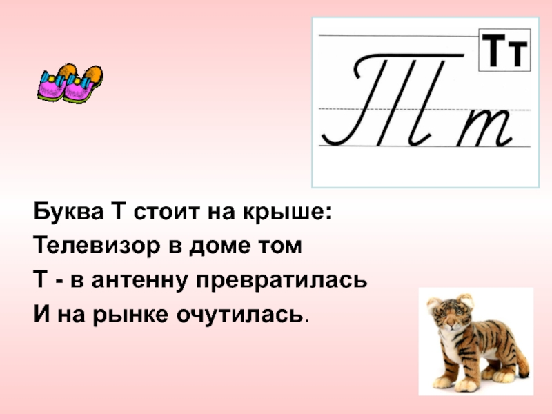 Слайд 21Буква Т стоит на крыше: