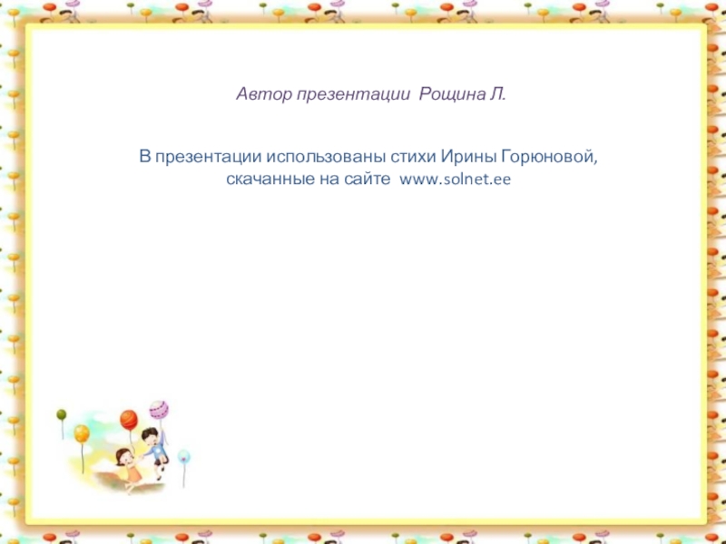В презентации использованы стихи Ирины Горюновой, скачанные на