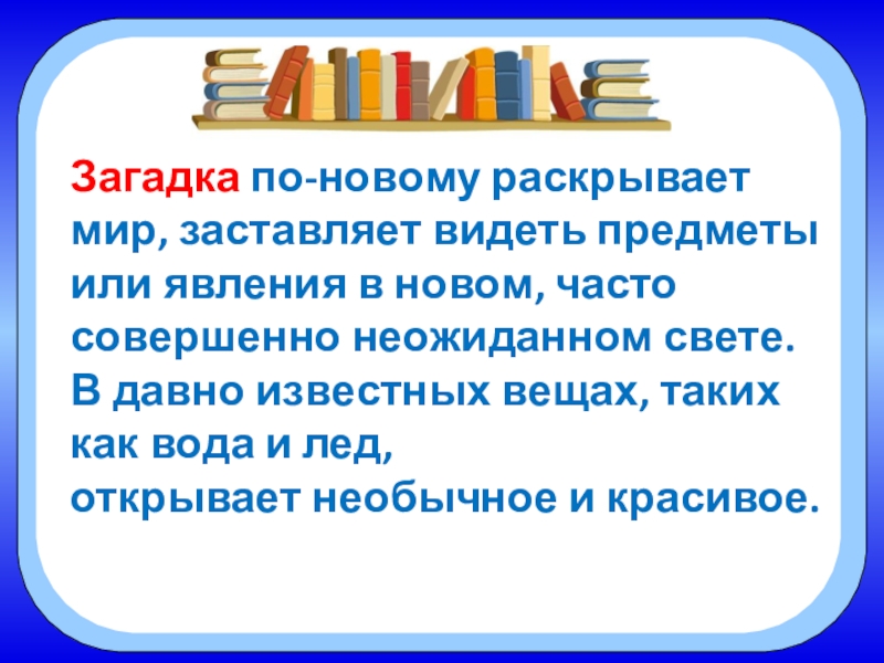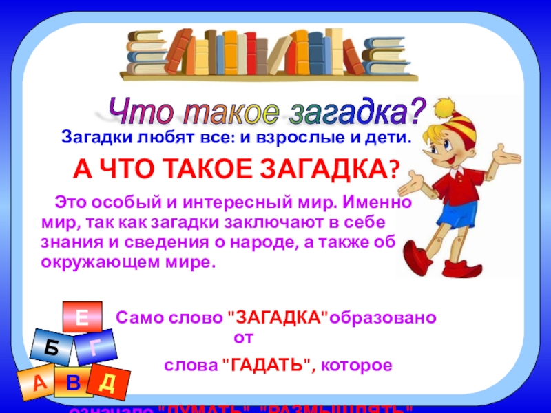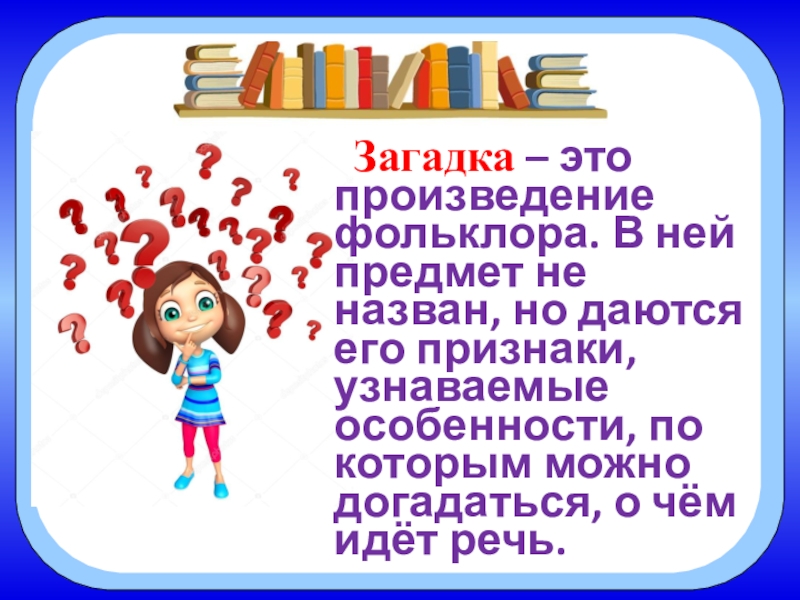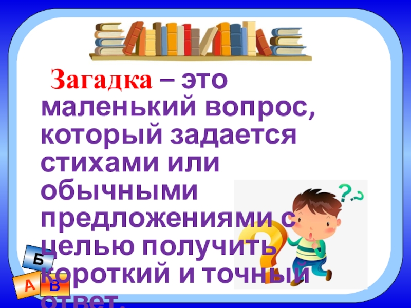 Загадка – это маленький вопрос, который задается стихами или обычными предложениями