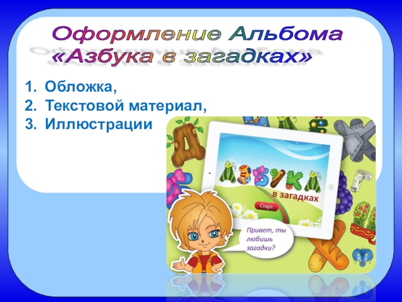 9. Оформление Альбома «Азбука в загадках», в который дети соберут загадки и разместят их в алфавитном порядке.