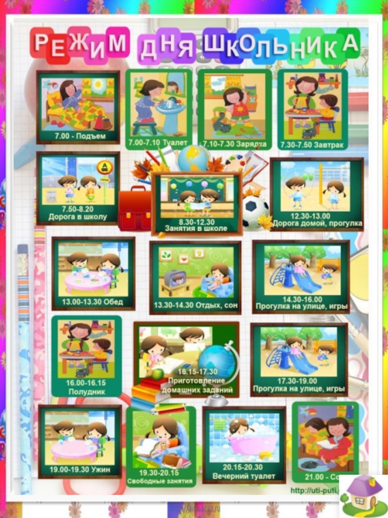 человека. Режим каждого человека должен предусматривать определённое время для работы, отдыха , приёма пищи и сна.