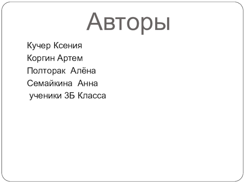 АвторыКучер КсенияКоргин АртемПолторак АлёнаСемайкина Анна ученики 3Б Класса