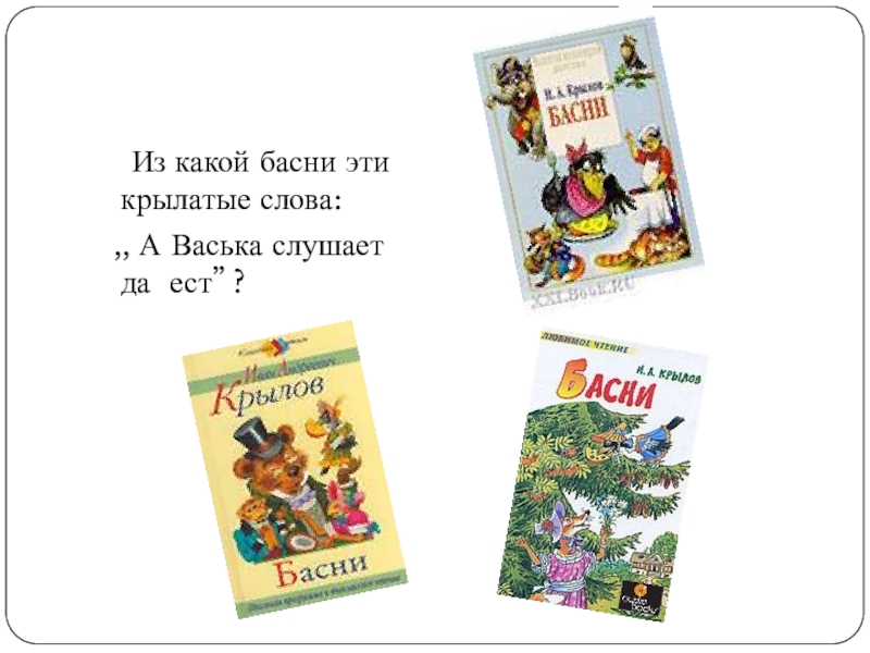 Слайд 6 Из какой басни эти крылатые слова: