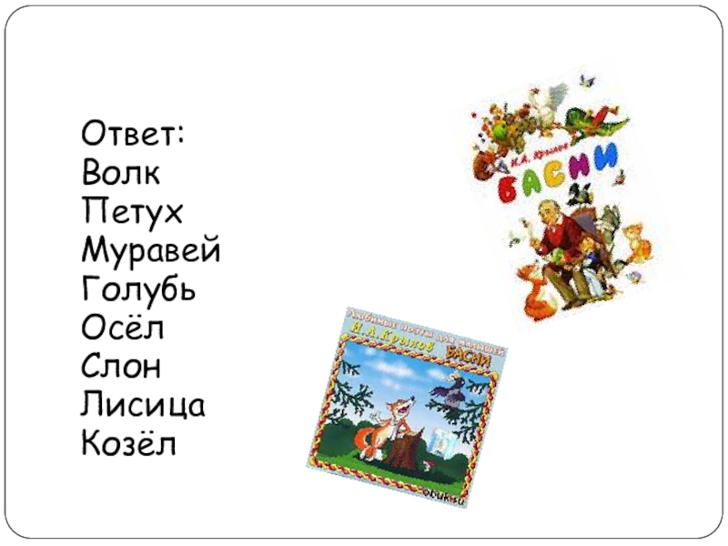 Презентация, доклад Басни Крылова Викторина