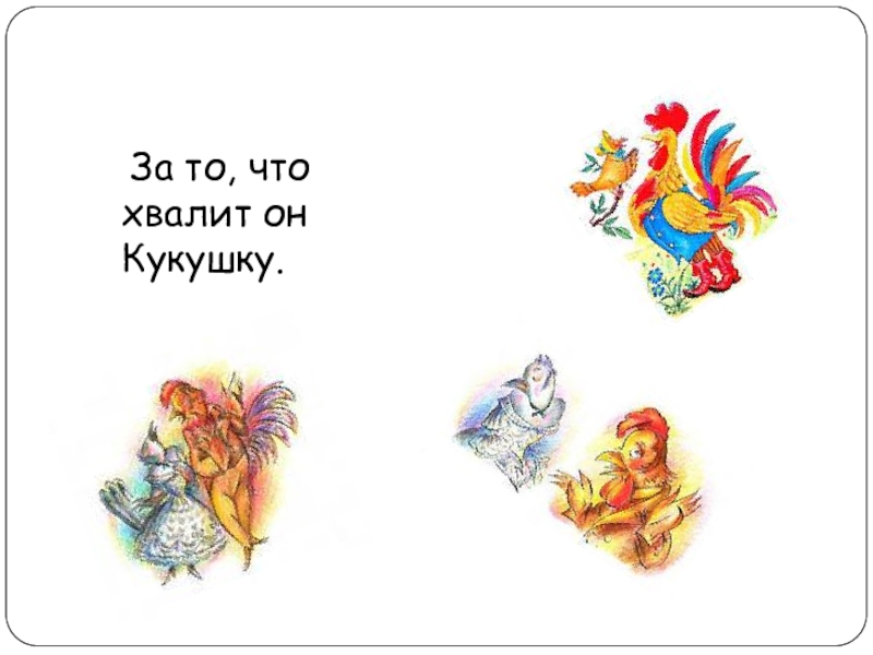 Слайд 13 За то, что хвалит он Кукушку.