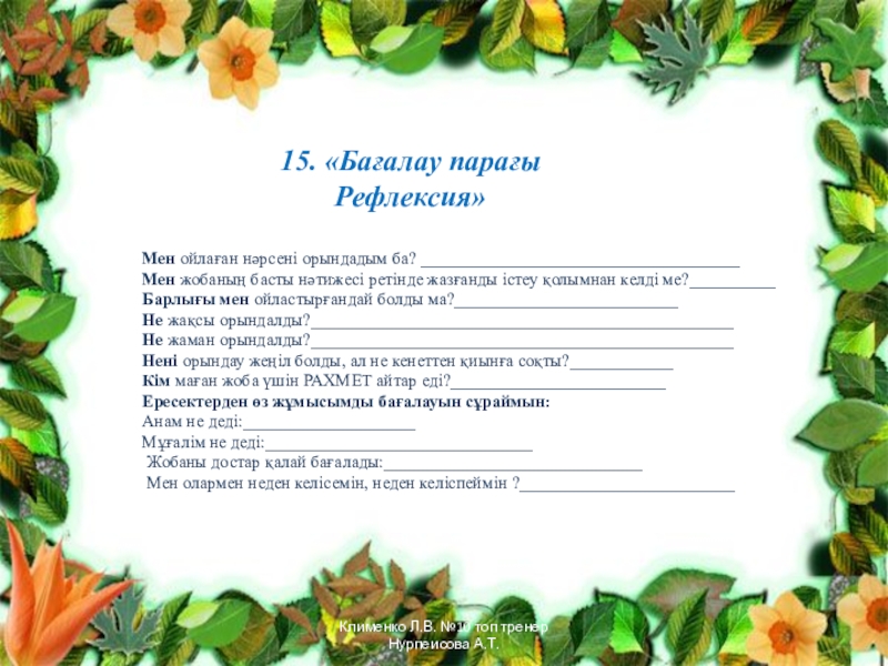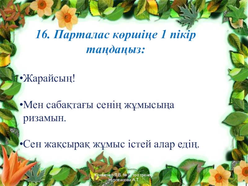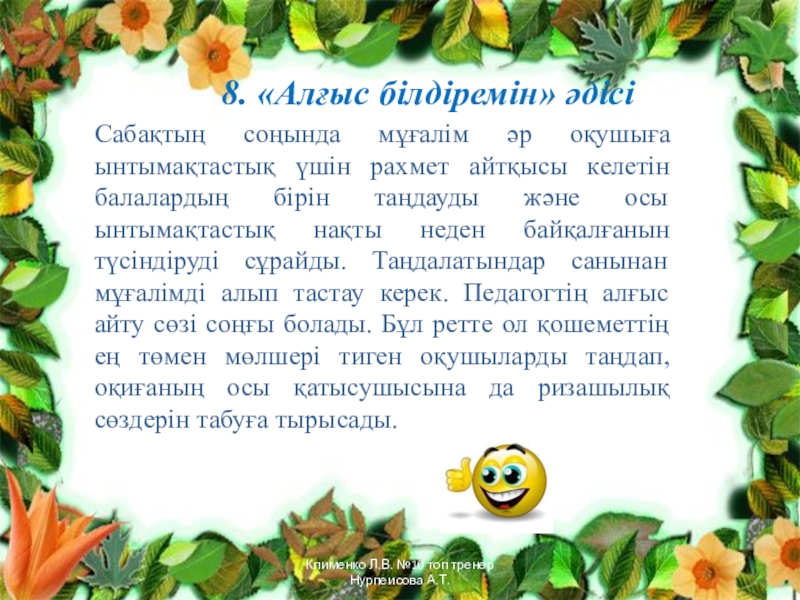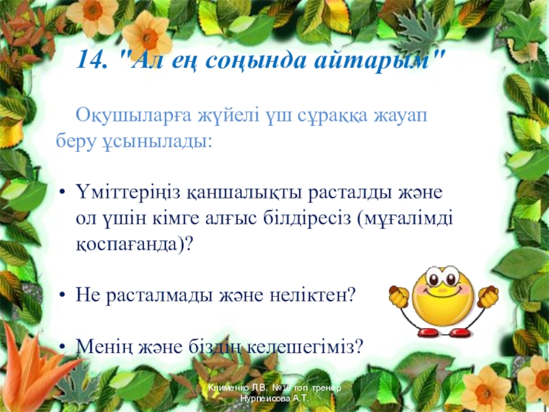 Клименко Л.В. №10 топ тренер Нурпеисова А.Т.