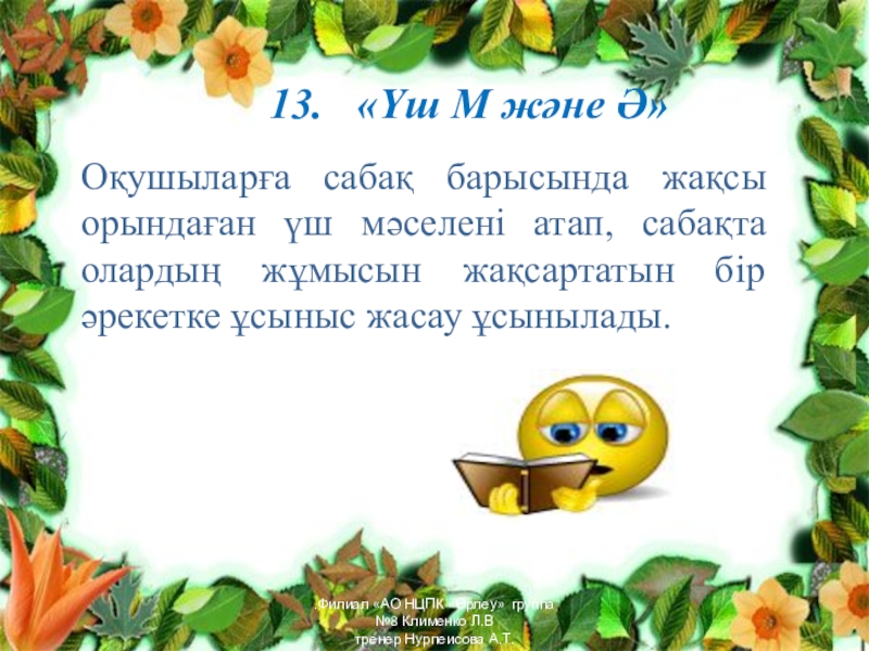 .Филиал «АО НЦПК «Өрлеу» группа №8 Клименко Л.В