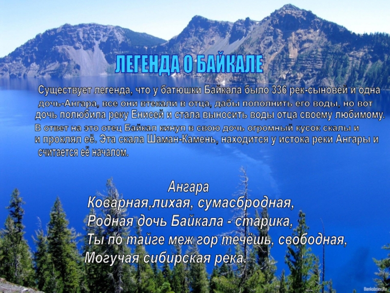 и проклял её. Эта скала Шаман-Камень, находится у истока реки Ангары и