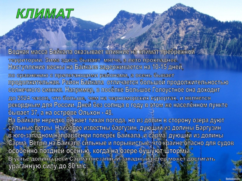 сильные ветры. Наиболее известны баргузин, дующий из долины Баргузин