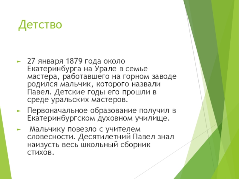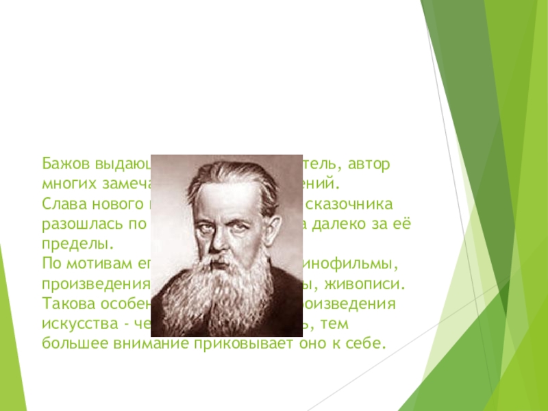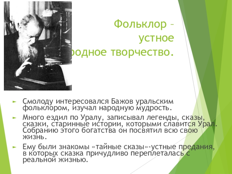Смолоду интересовался Бажов уральским фольклором, изучал народную мудрость.