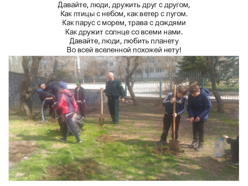 Слайд 10Давайте, люди, дружить друг с другом, Как птицы с небом, как ветер