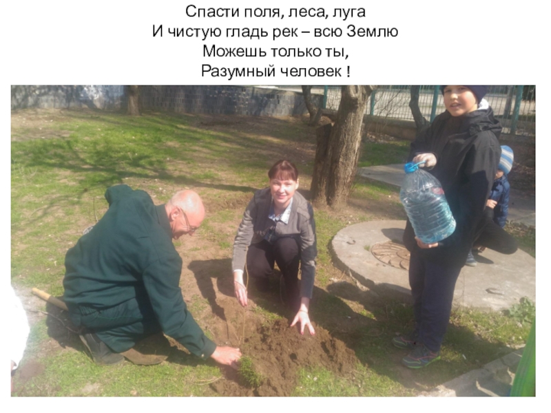 Спасти поля, леса, луга И чистую гладь рек – всю Землю Можешь только ты, Разумный человек !