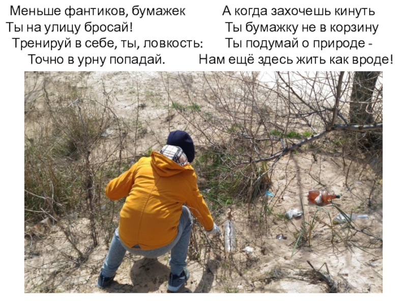 Меньше фантиков, бумажек      А когда захочешь кинуть Ты на улицу бросай!