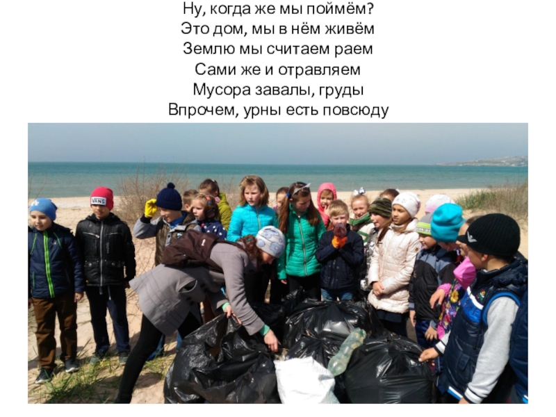 считаем раем Сами же и отравляем Мусора завалы, груды Впрочем, урны есть повсюду