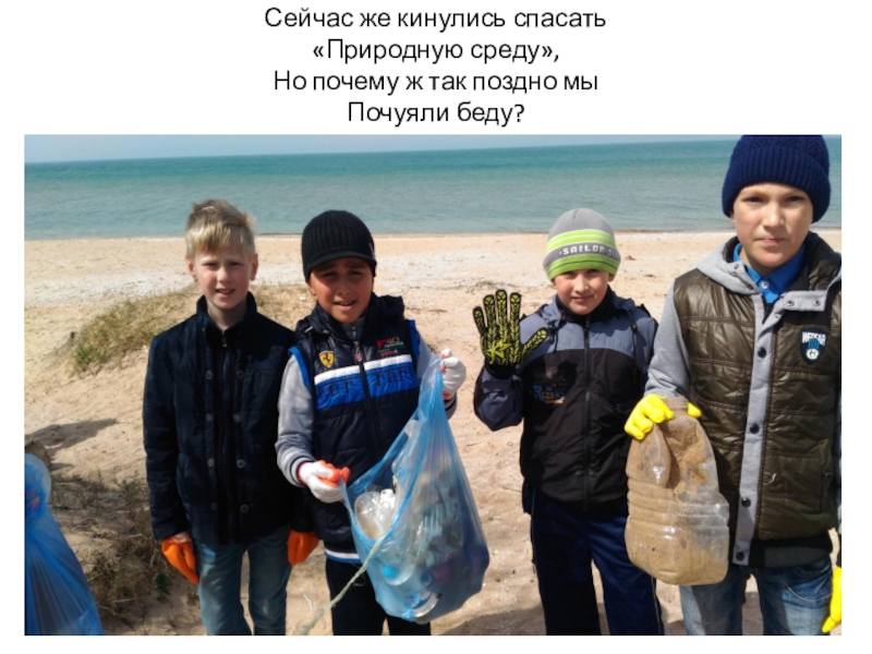 Слайд 7Сейчас же кинулись спасать «Природную среду», Но почему ж так поздно мы Почуяли беду?