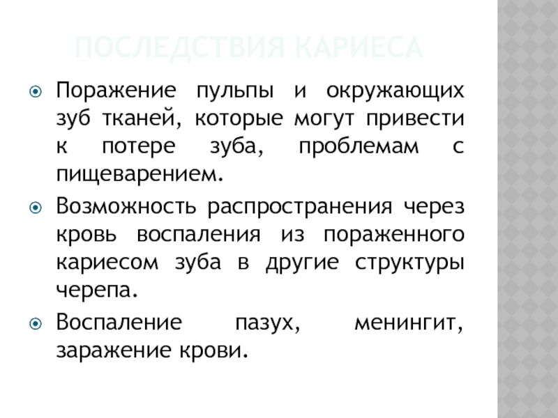 Слайд 3ПОСЛЕДСТВИЯ КАРИЕСА
