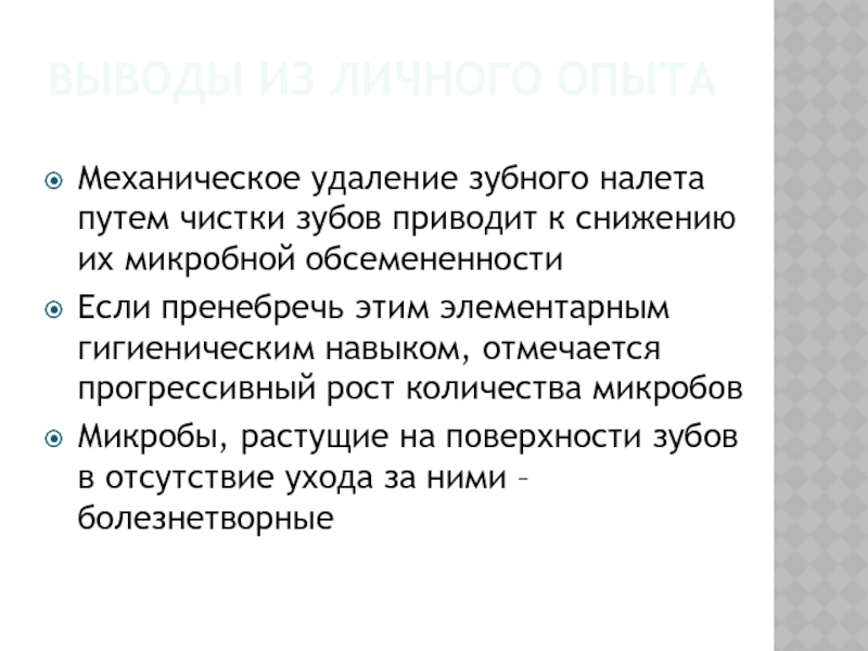 Слайд 18Выводы из Личного опыта