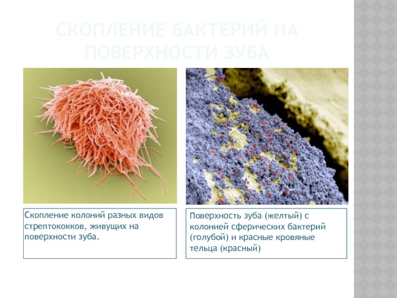 Слайд 11СКОПЛЕНИЕ БАКТЕРИЙ НА ПОВЕРХНОСТИ ЗУБА