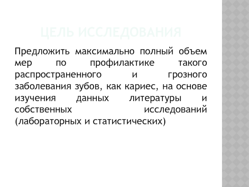 грозного заболевания зубов, как кариес, на основе изучения данных литературы и собственных исследований (лабораторных и статистических)