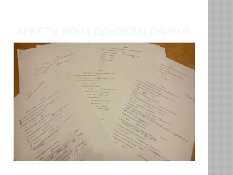 Проанализировать знания одноклассников о зубах, мерах по профилактике их заболеваемости. Вычислить уровень заболеваемости кариесом среди них (на основе анкетирования)