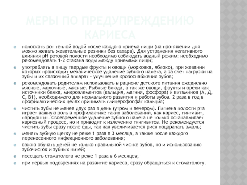 Слайд 12Меры по предупреждению кариеса